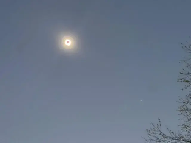 I found this photo showing the eclipse with Venus online. I have yet to see any photo that captures the beauty of the pink and blue corona that we saw.